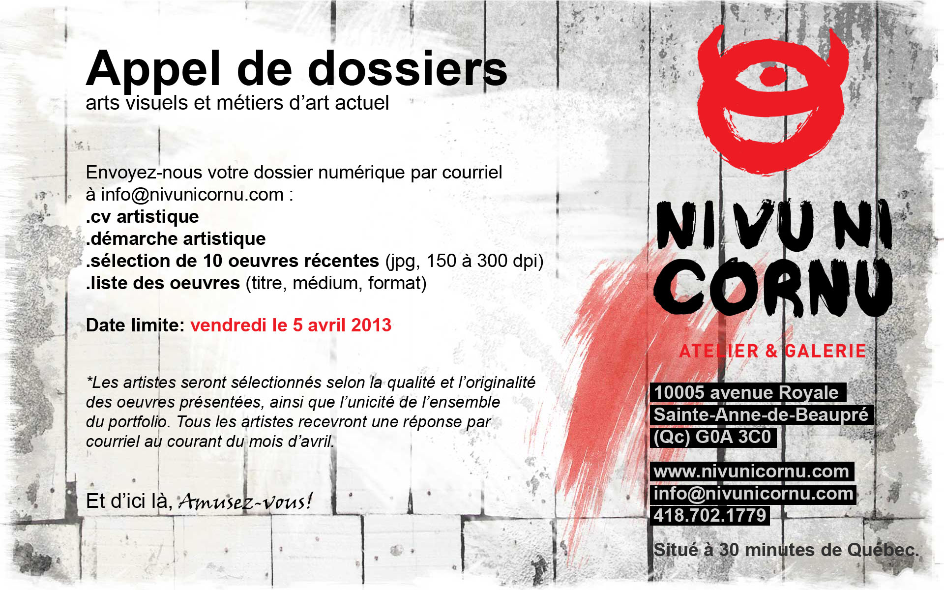 Appel de dossiers Atelier Galerie Ni vu ni cornu