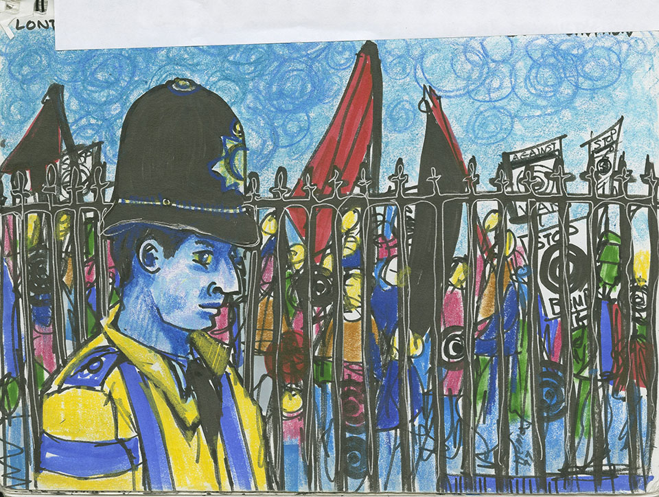 Raillant tout en se soumettant à la nécessité du savoir vendre, l’artiste monnayera dessins ou poèmes sur place et invite le public à investir – et spéculer – sur ses œuvres lors d’un encan de clôture aux allures de happening.