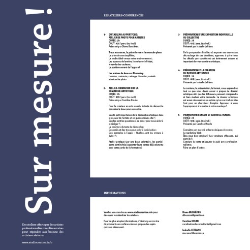 CALENDRIER DES FORMATIONS ET DES ATELIERS
