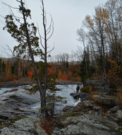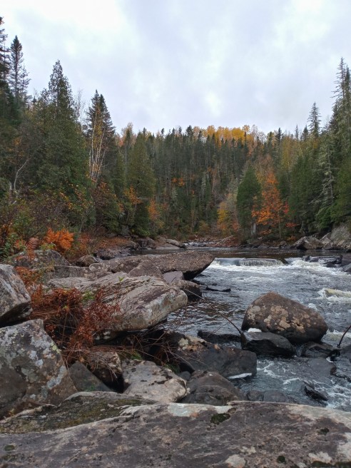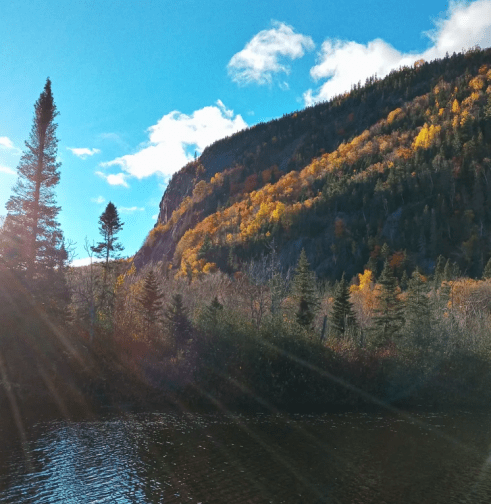 Ce sentier longe la superbe rivière Petit-Saguenay, bordée par les montagnes du Fjord du Saguenay arborant leurs couleurs automnales.