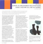 - Houde, Caroline, Survol du mouvement des Plasticiens dans l’histoire de l’art au Québec, Bazzart – Vitrine sur les arts et la culture, Volume 7 no. 1, Québec, avril 2013